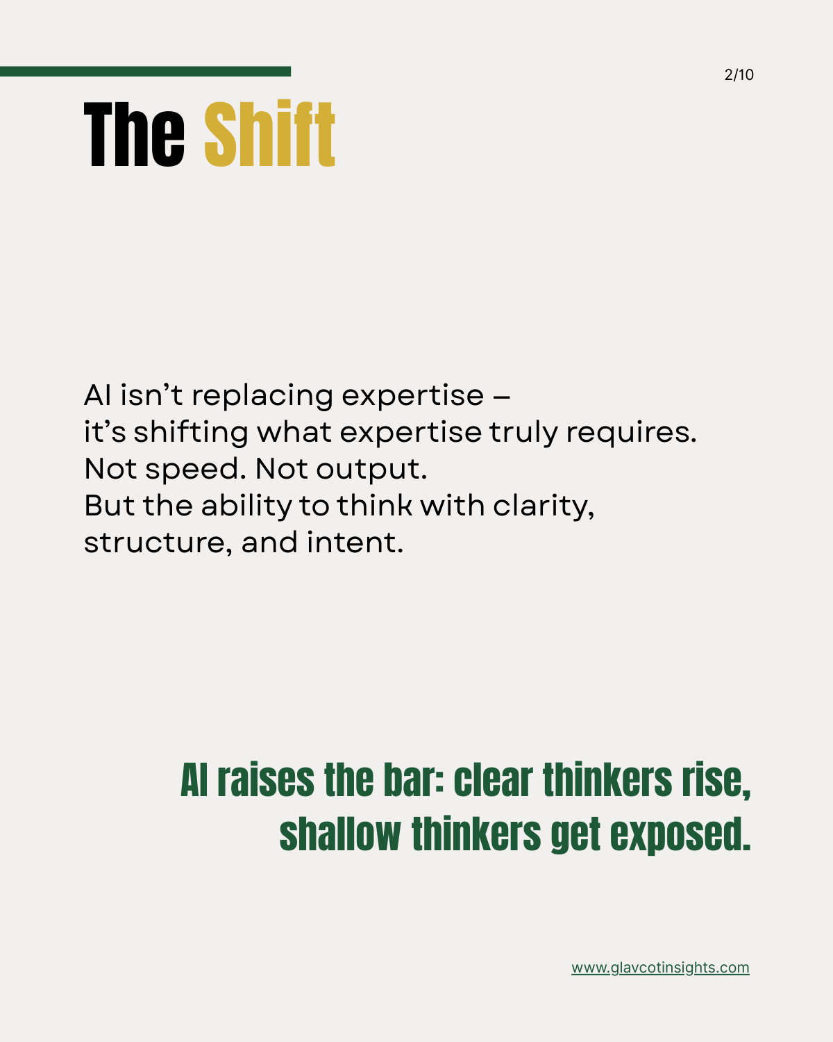 AI isn’t replacing experts — it’s reshaping what expertise requires. Not speed. Not output. But clarity, structure, and the ability to think well under uncertainty. Most companies are chasing automation.