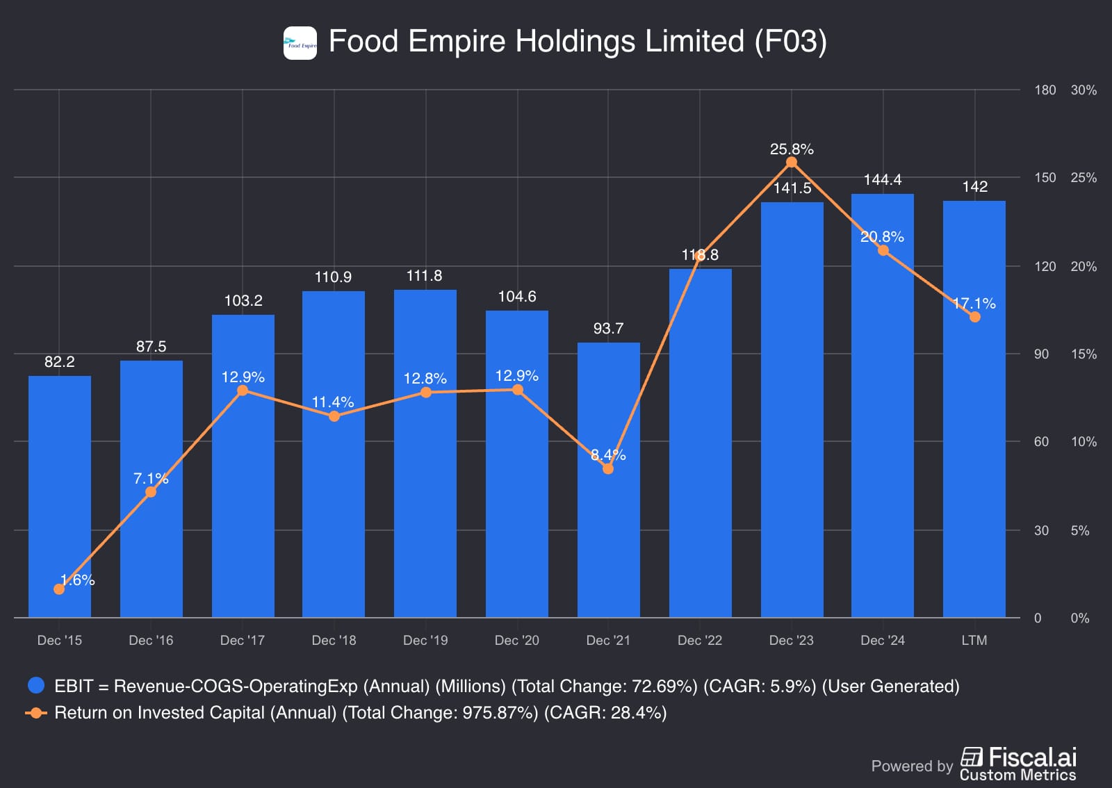 Food Empire’s ROIC tells a decade-long story of systematic improvement: