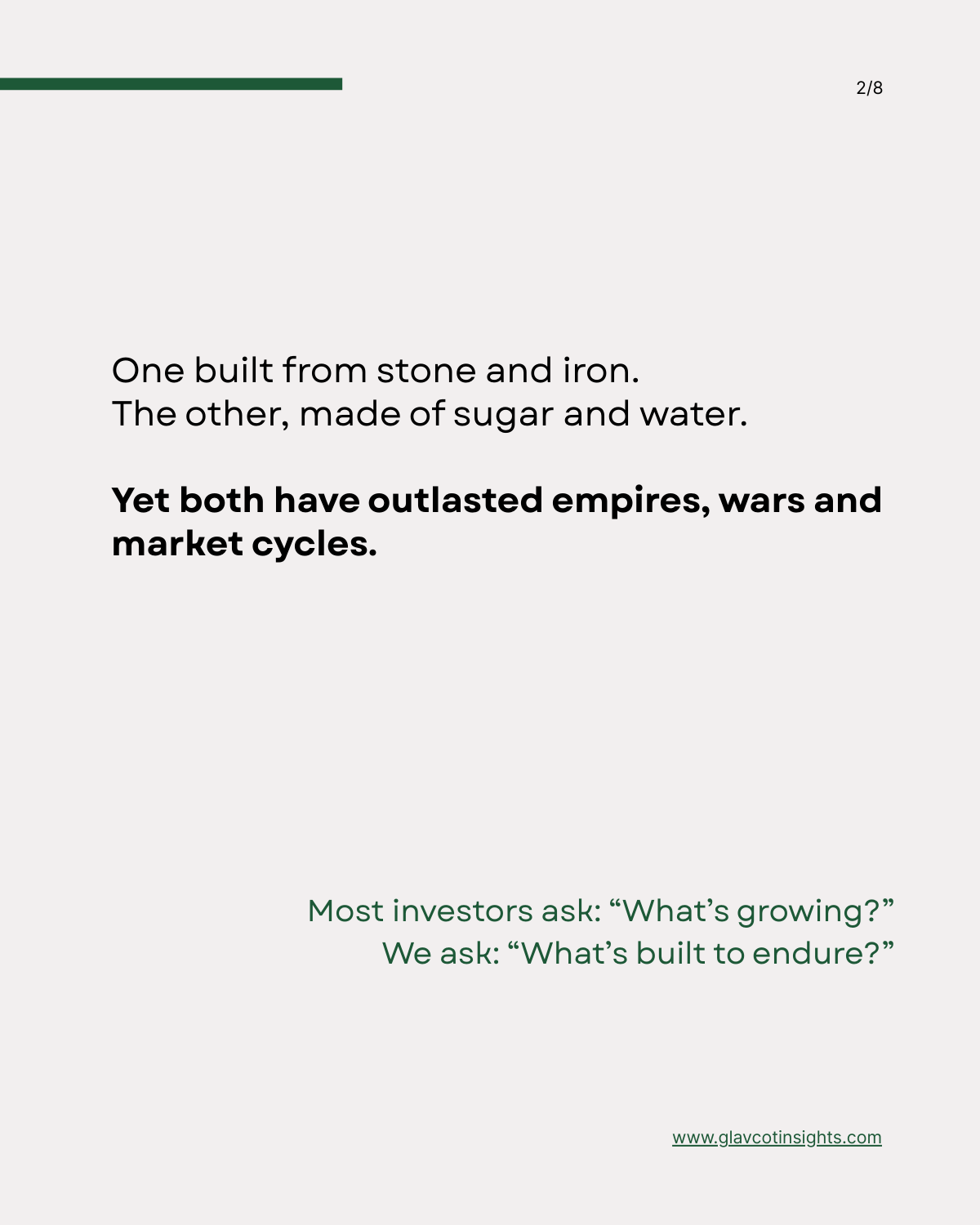One built from stone and iron. The other, from sugar and story. Yet both have outlasted empires, wars, and market cycles. What do enduring architecture and enduring brands share? Foundation. Consistency. Emotion. When these align, endurance compounds — quietly, but powerfully.